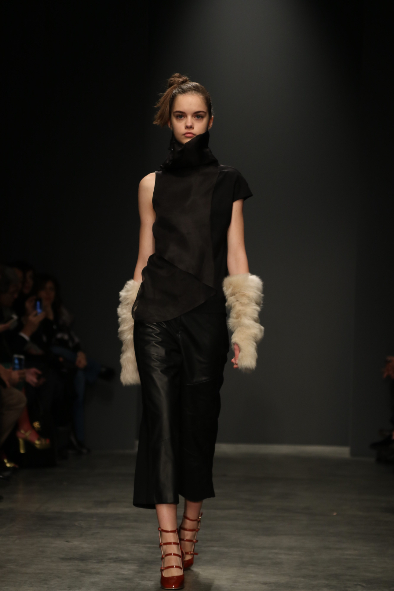 Sabrina Persechino, invece, ci presenta la sua collezione Primavera/Estate 2017, ispirata alla “jaali”, pietra perforata o grata con un motivo ornamentale ottenuto usando calligrafia e geometria. La rinveniamo nel macramè degli abiti bianchi dalle forme lineari e pulite, che lascia intravedere la silhouette esaltandone la femminilità. Dai raggi che si formano con il passaggio della luce attraverso la jaali deriva l’idea del tessuto filigrana oro, colore che si rivela essere il grande protagonista della collezione e che ha il compito di unire e vivacizzare qualsiasi tipo di outfit. Immancabile il nero, tratto distintivo della stilista.