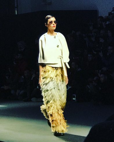 Ad aprire le danze Soocha con i suoi “Atti Umani/Human Acts” che richiamano i tumultuosi anni ‘80 della Corea del Sud, gli anni della faticosa riconquista della libertà. La collezione è dunque un inno alla speranza, alla rinascita ed è rivolta ad una donna contemporary, che non smette di riflettere sul mondo circostante. Lane classiche dai pesi leggeri e twill di cotone incontrano organza, seta, tessuti imbottiti, stampe a fiori o patchwork (elemento, quest’ultimo, tipico dell’abbigliamento coreano dell’epoca). I look vedono l’alternanza di maschile e femminile: giubbotti militari si mixano a vestiti in raso, capi in lana classica maschili vengono dotati di balze, la camiceria da uomo è arricchita con particolari femminili.